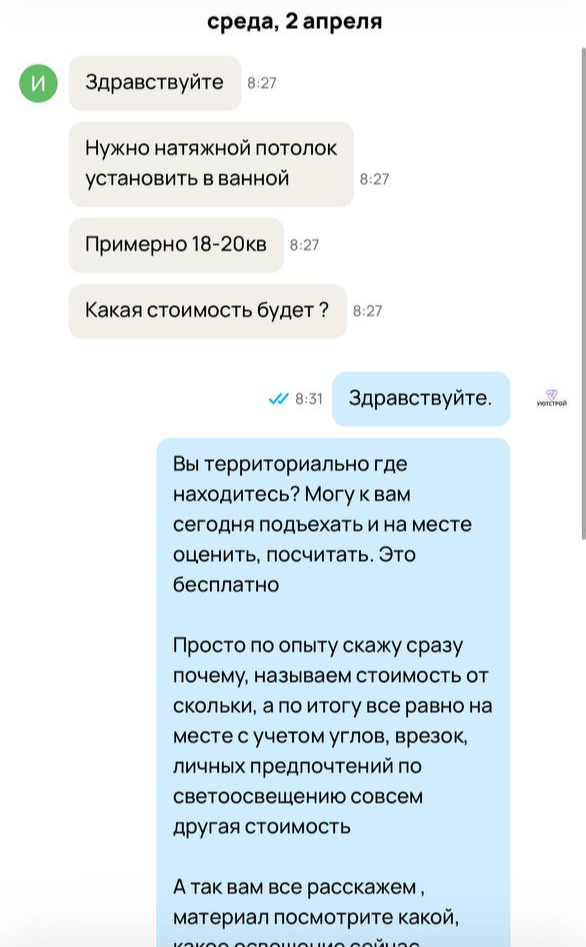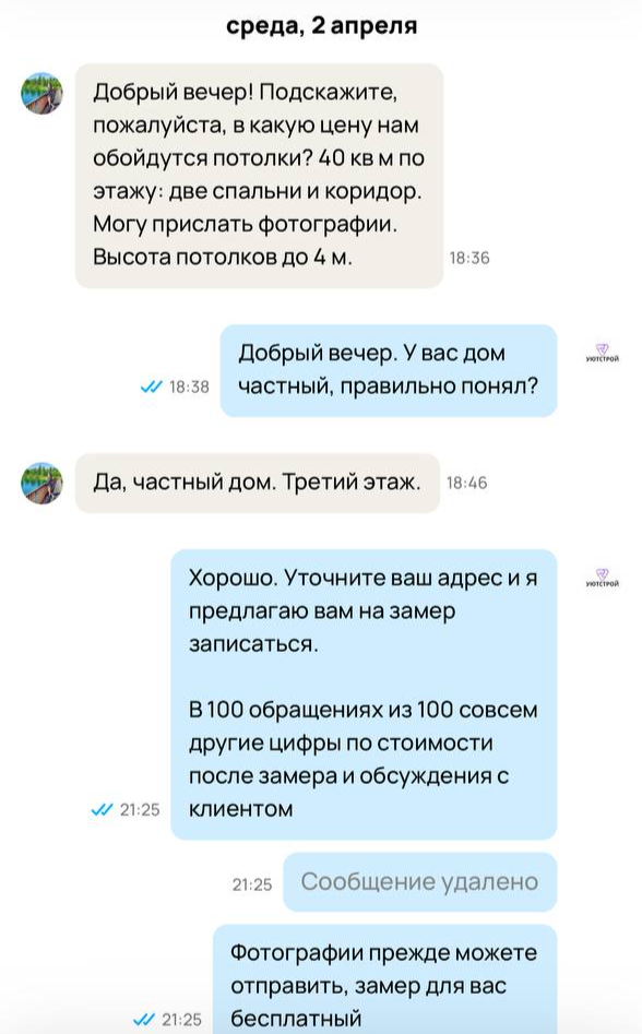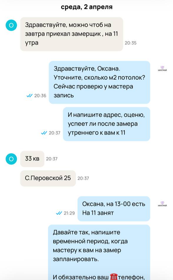 Раньше у нас было мало записей, все время уходило на переписки, а до замеров доходили от силы пару человек. После рекламы у нас уже есть готовый календарь с расписанием замеров, они теперь забиты на месяц вперед! Большое спасибо, будем работать дальше!